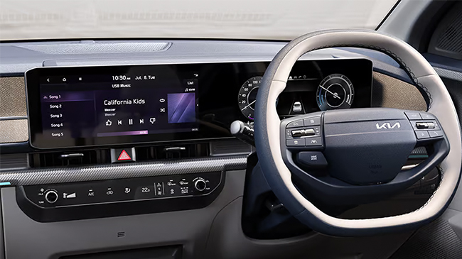 The Kia Carens Clavis EV showcases a captivating design aesthetic. Every element of this MPV is a product of excellent craftsmanship. The striking front grille, attention-grabbing LED DRLs, and thoughtfully arranged cabin make it a perfect 7-seater family car in India.