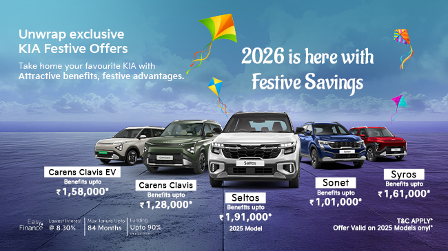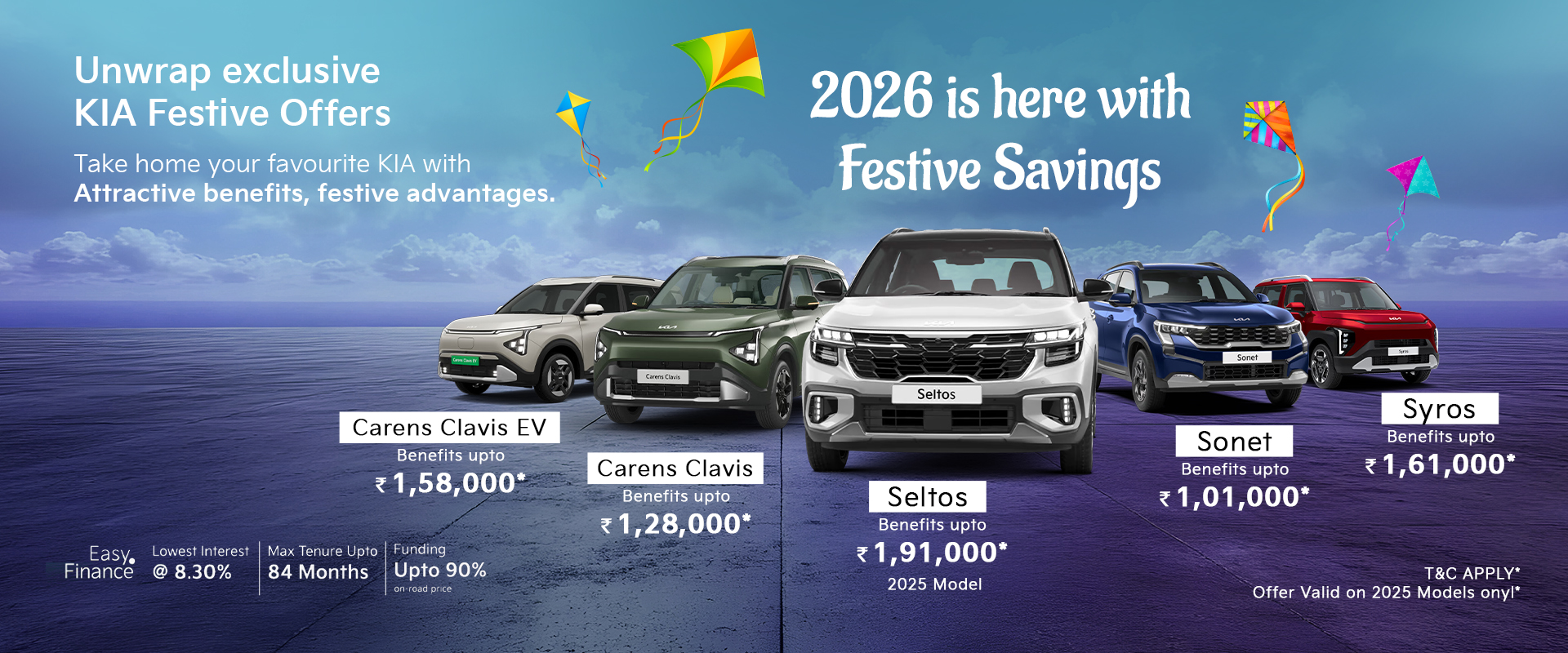 There are five Kia models that have special offers in January 2026. Get benefits up to ₹1.94* lakhs on models such as Kia Seltos, Kia Sonet, Kia Syros, Kia Carens Clavis and Kia Carens Clavis EV only at PPS Kia.